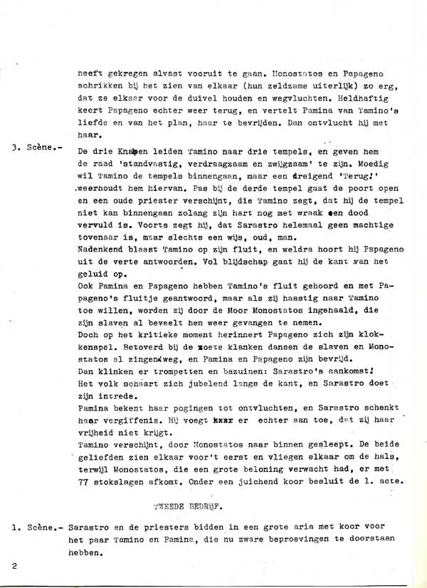 Het programmaboekje beschrijft in detail wat er op toneel te zien en te horen was, waardoor het toch wel gecompliceerde verhaal goed te volgen was.