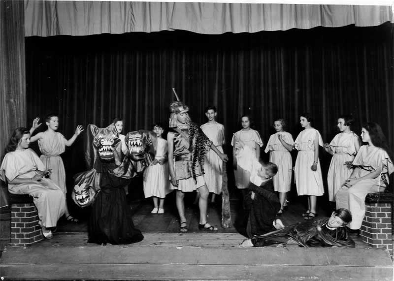 Een van de eerste grote spektakels was Herculis Labores, geschreven en geregisseerd door leraar klassieke talen R. Goldschmidt. De kostuums, decors en attributen hiervoor werden gemaakt onder leiding van tekenleraar Nico Baak.